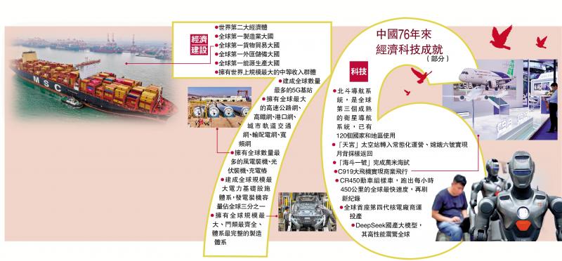 圖:中國76年來經濟科技成就