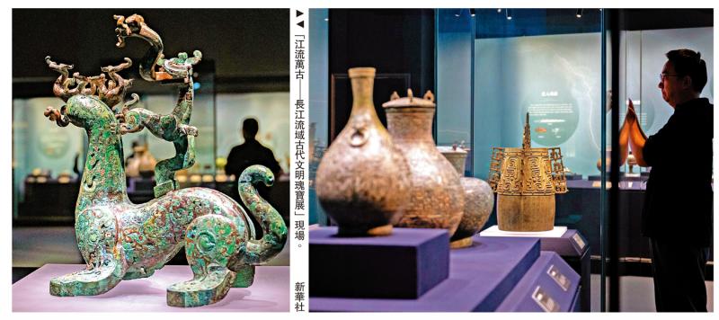 圖:「江流萬古──長江流域古代文明瑰寶展」現場。\新華社