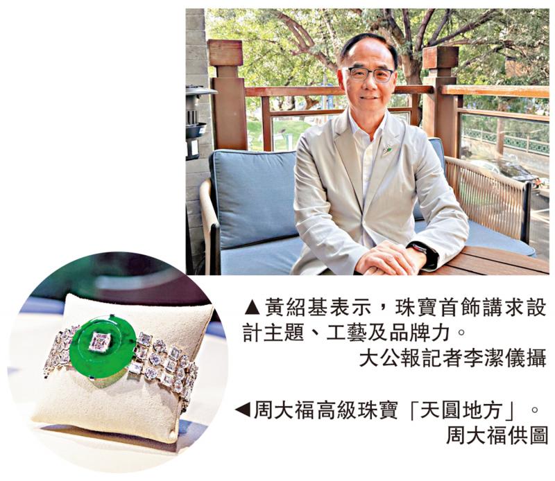 上圖:黃紹基表示,珠寶首飾講求設計主題、工藝及品牌力。\大公報記者李潔儀攝;下圖:周大福高級珠寶「天圓地方」。\周大福供圖