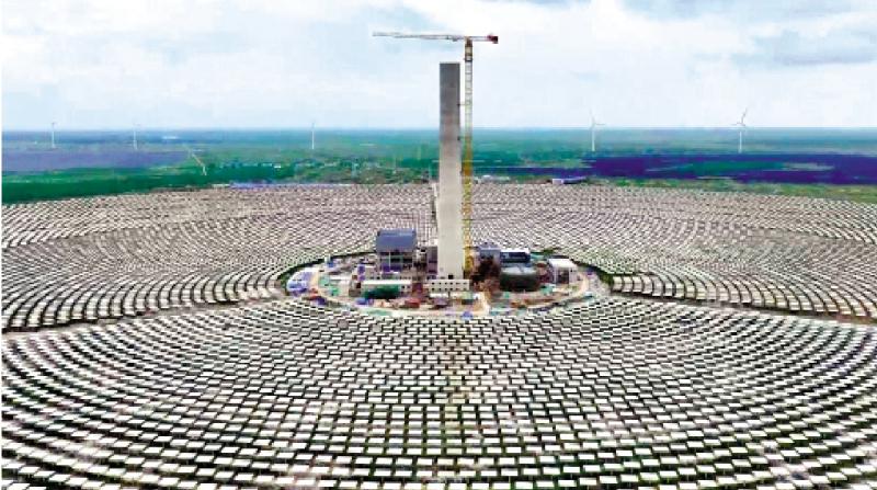 圖:吉林省白城市大安市的魯固直流外送光熱項目,是國家第一批「風、光、熱、儲」示範項目,從空中俯瞰十分壯觀。