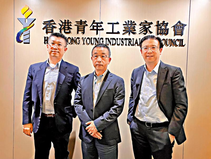 圖:左起為香港青年工業家協會榮譽會長陳宇澄、會長蔡俊杰及榮譽會長高鼎國。