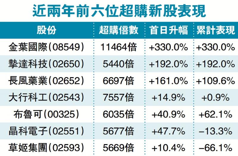 圖:近兩年前六位超購新股表現