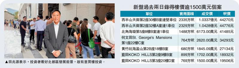 圖:田兆源表示,投資者看好北都區發展前景,故有意買樓投資。