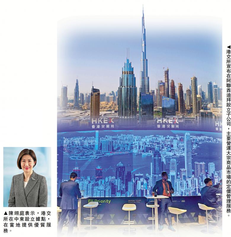 左圖:陳翊庭表示,港交所在中東設立據點,在當地提供優質服務。右圖:港交所宣布在阿聯酋迪拜設立子公司,主要營運大宗商品市場的定價管理服務。