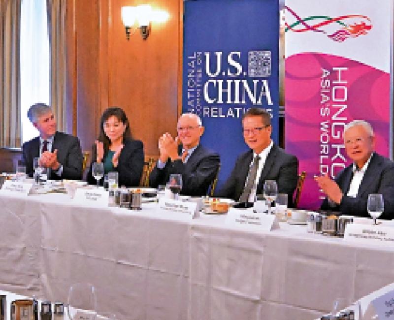 圖:陳茂波(右二)出席由美中關係全國委員會與香港駐紐約經濟貿易辦事處聯合舉辦的午餐會。
