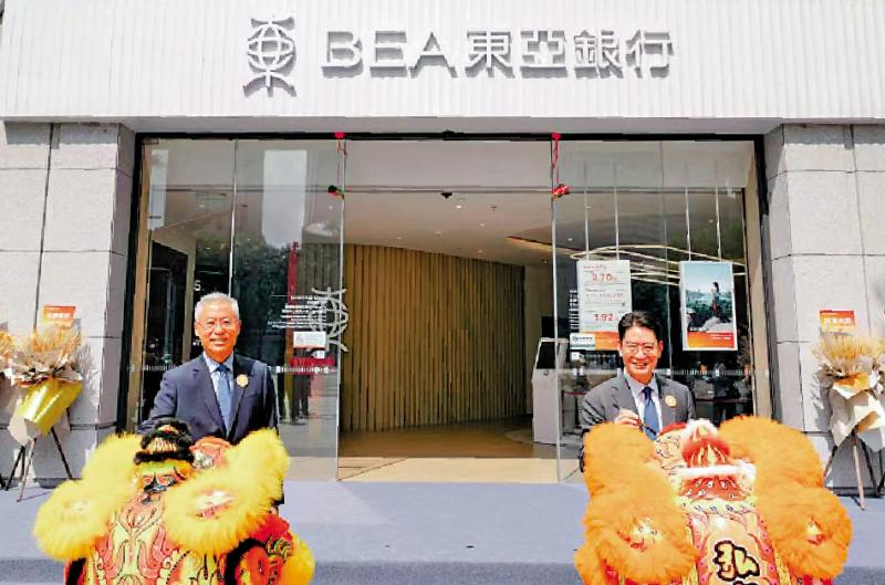 圖:李民斌(右)及畢明強出席東亞銀行福田旗艦行的開幕儀式。