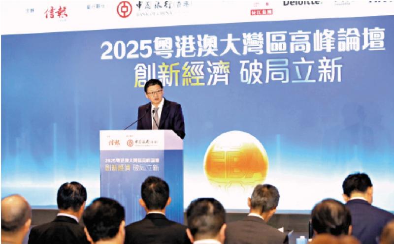 圖:孫煜在「2025粵港澳大灣區高峰論壇」上,就大灣區發展分享看法。