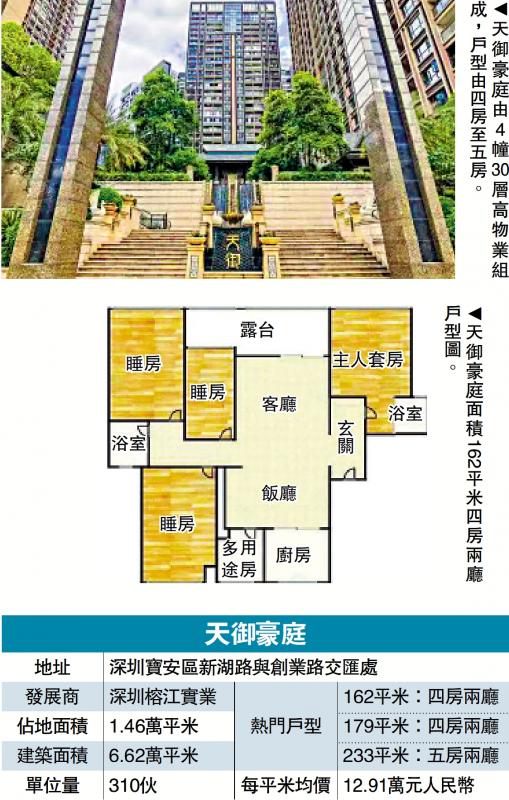 「相比前海、深圳灣動輒每平米逾20萬元的豪宅,天御豪庭的性價比在於其配套的成熟度。」中原地產寶中片區嚴姓置業經理指出,該盤租金回報率約2.8%,適合長期持有。