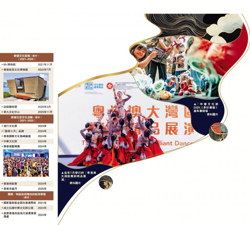 5年來,香港舉辦的文化藝術盛事眾多,相關政策助力,為一眾藝術家提供更多機遇。他們認為「十四五」規劃賦予香港的文化定位,適逢其時,本地文化藝術活動愈發蓬勃,從業者也能搭乘這班順風車,在中外文化薈萃的舞台上展示才華,將自己的藝術作品,如一顆種子,傳遞到更多更遠的地方。正如香港青年舞者唐婭接受大公報記者專訪時所說:「香港文藝工作者也因此擁有了更廣闊的展示舞台,也更有責任感,想去做新的嘗試。」/大公報記者 劉 毅、顏 琨、郭悅盈