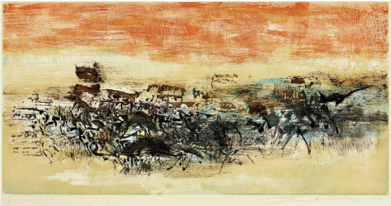圖:趙無極作品飛塵法蝕刻版畫作品《無題》。