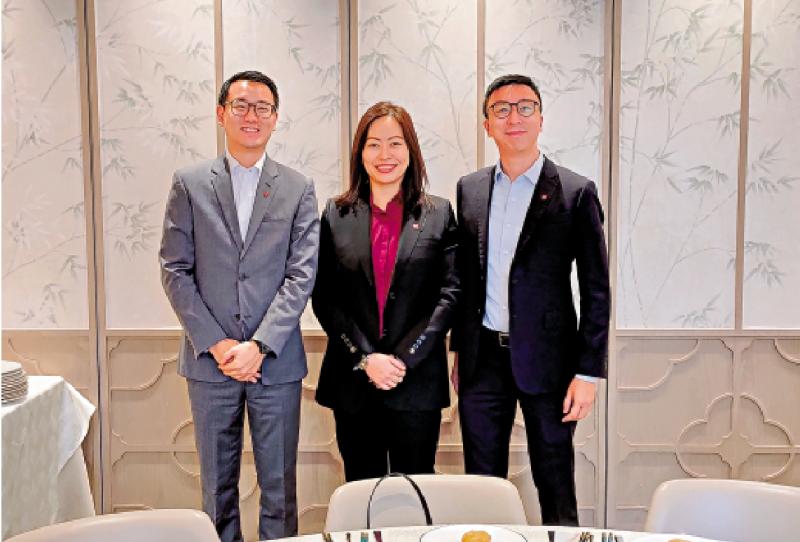圖:王美寶(中)表示,GlobeSend有助中小企解決跨境匯款的痛點。旁為李俊賢(左)和林均灝(右)。/大公報攝