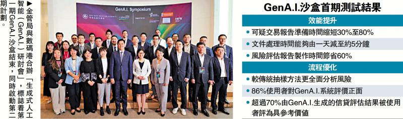 【大公報訊】金管局與數碼港公布,生成式人工智能(GenA.I.)沙盒首期測試結果正面,為銀行業提升實質營運效益。參與銀行普遍認為AI解決方案有助大幅提升效率及優化業務流程。第二期沙盒計劃將聚焦積極加強AI治理,建立以「AI對抗AI」風險管控新模式。