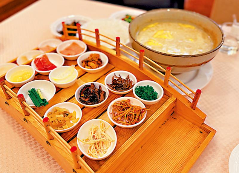 然而,真正讓人難忘的,不只是那一碗湯的濃郁與香氣,而是整個「過橋」的過程。先是湯碗冒着熱氣端上桌,油光浮動如湖面初晴,配料一小碟一小碟地擺在托盤上:粉紅的火腿片、黑亮的木耳絲、翠綠的韭菜段、金黃的鵪鶉蛋,整齊得像節日的供桌。食客親手將它們一一放入湯中,看着生與熟在滾燙中交替,透明的湯瞬間變得濃白,香氣在鼻尖縈繞。那是一種與食物對話的節奏,也是一場關於等待與投入的儀式。