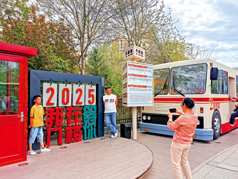 圖:「刀迷」遊客在烏魯木齊的八樓主題車站打卡留念。\大公報記者應江洪攝