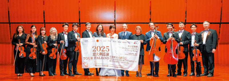 此次是第一個中國香港樂團到意大利巡演。樂團在意大利首演弦樂版《梁祝》和全新編創的《香港電影金曲回響》,以弦樂為橋,承擔「文化使者」的使命,在國際舞台上演繹香港精神與中國故事。