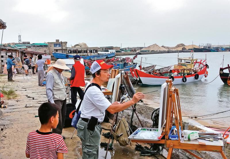 圖:來自內地、香港、台灣的畫家在福建漁村採風創作/大公報記者蔣煌基攝