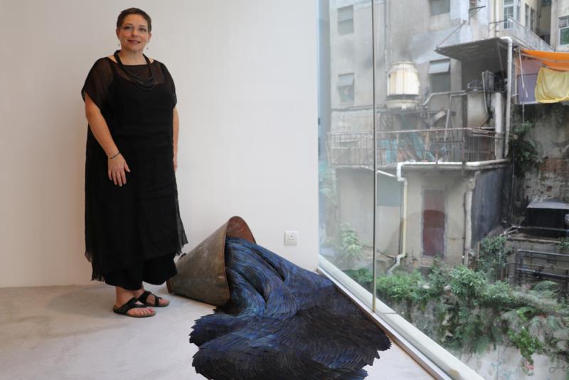 圖:藝術家Kate MccGwire與作品《Secrete》(2014)/大公報記者梁舒婷攝