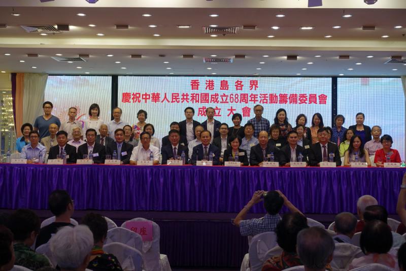 圖:香港島各界慶祝中華人民共和國成立68周年活動籌備委員會舉行成立大會,賓主合影\大公報記者郭艷媚攝
