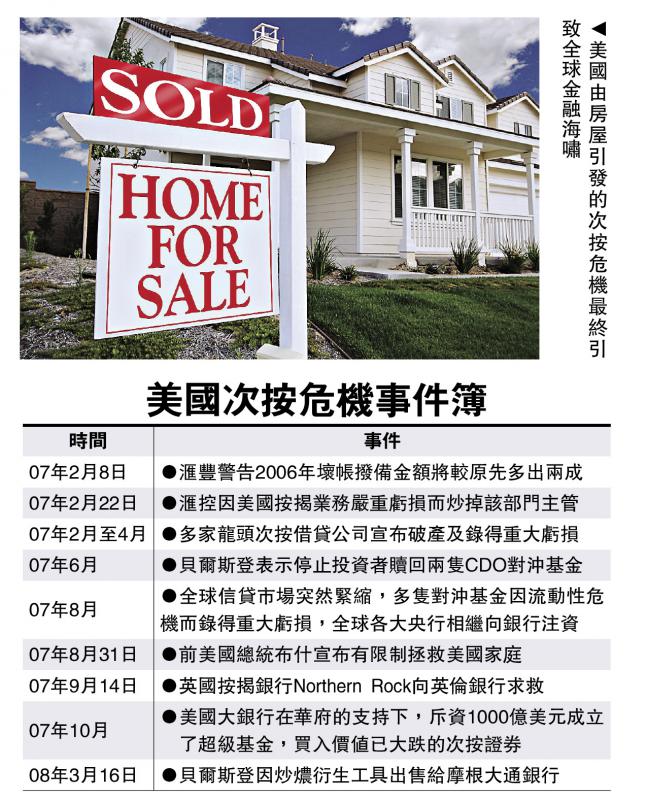 圖:美國由房屋引發的次按危機最終引致全球金融海嘯