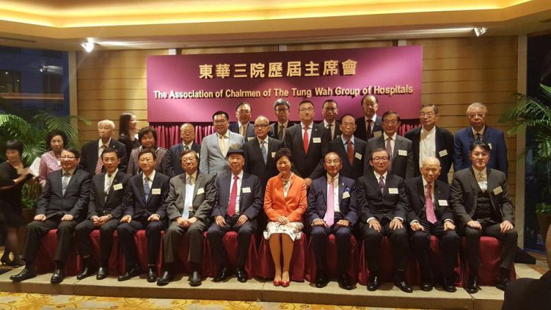 圖:行政長官林鄭月娥應邀出席東華三院歷屆主席會的晚宴,賓主合照