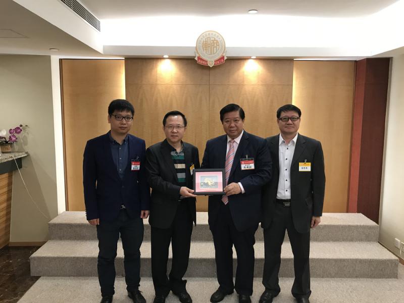 圖:黃書銳(右二)致送紀念品予鄭建民(左二)