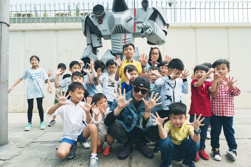 基仔坦言此電影加入了自己的故事,他自細都鍾意機械人。05年第一次紅館演唱會有好多機械人、動漫元素。小時候他設計太空船、機械人。這次拍攝最難忘跟很多小朋友合作,過程中要引導他們,令他們開心,自然就會表現好。基仔今次自導自演,又主唱廣告歌,是否收幾份酬勞呢?基仔笑言沒什麼錢收了,都已將錢花在製作上。