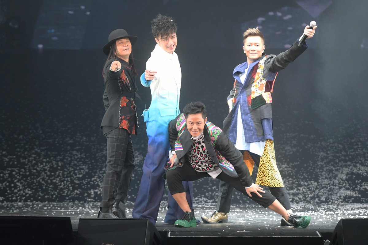 昨晚,基仔亦請了草蜢當嘉賓,四人合唱《忘情森巴舞》,基仔坦言很感謝各方好友的支持。在尾段,基仔穿上一襲橙紅色大褸登場,有歌迷笑他似「龍蝦」,基仔立即說:「龍蝦是形容某人個老婆,我這身潮服是由超過80對波鞋組成的盔甲。」演唱會結束時,基仔亦坐時光機離場。