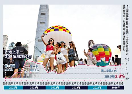 經濟強韌/港上季GDP增3.8%超預期 近兩年最佳