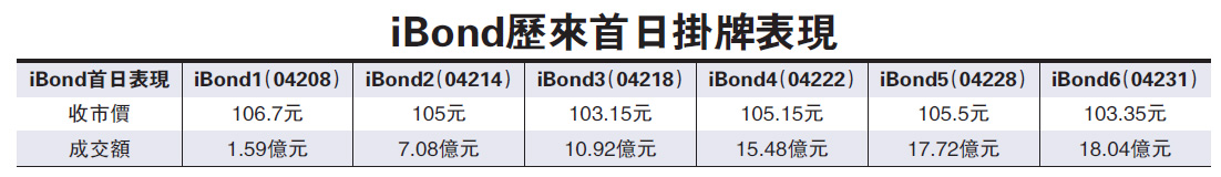 雖然上市後價格表現一般,惟iBond 6的成交活躍,首日成交金額錄得18.04億元,為歷來之冠。