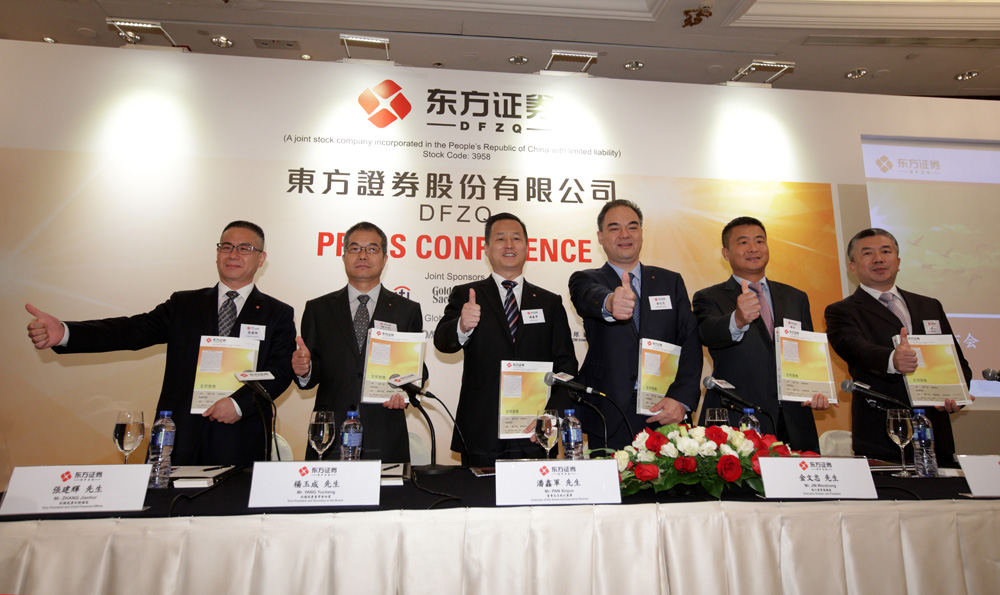 圖:東方證券近年積極擴展仍有增長的財富管理及資產管理業務,以應付行業的轉變。圖為管理層日前於IPO記者會上合照
