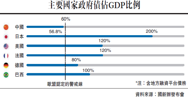 中國財政部五月底表示,去年全國政府債務的負債率將上升到41.5%左右,但仍低於歐盟60%的預警線;總體來看政府債務仍有一定舉債空間,適度加大國債和地方政府債券發行規模,是政府依法規範加槓桿的重要舉措。