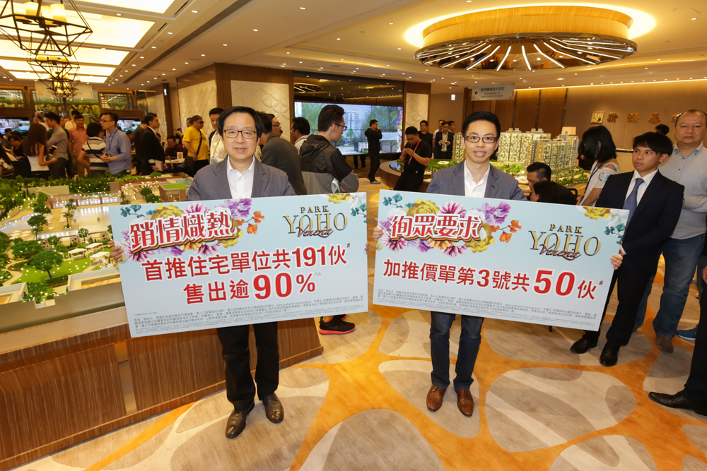 PARK YOHO 1B期是英國脫歐後首個開賣新盤,剛過去周六首日開賣無懼壞消息,用家及投資者照捧場,首日大賣逾90%單位,發展商乘勝追擊加推應市。新地副董事總經理雷霆表示,前晚加推第3號價單共50伙,平均實用呎價11,640元,折實呎價10,360元,屬原價加推。雷霆坦言,英國脫歐對香港樓市無大影響,或者吸引更多資金轉投亞洲,加上美國或因此推遲加息,置業人士續享低息環境,項目會否再加推將視乎登記反應。