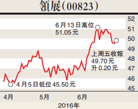 此外,領展業務主要經營本港商場,位置並非來自黃金購物地段,不受自由行放慢影響,與全球經濟關聯性也相對較低。加上集團剛過去財年可分派基金單位按年增長仍逾一成,屬價息齊賺的高息股,相信未來股價爆上歷史高位只是時間問題。