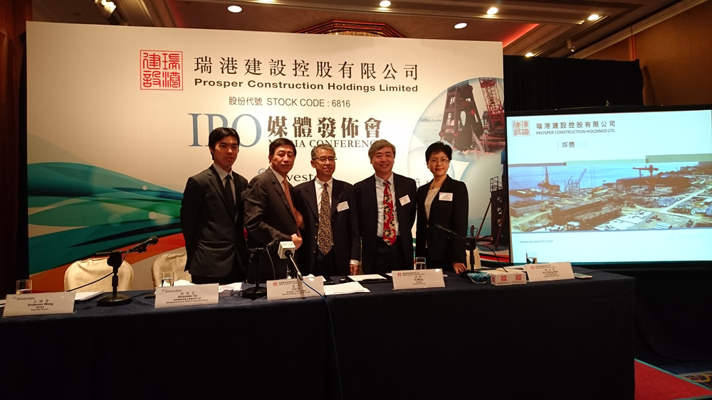 至於早前香港承建商的新股上市後不斷被炒起,今日則有海事承建商瑞港建設招股,計劃發行2億股,招股價介乎每股1元至1.25元,集資2.5億元,每手2000股,入場費約2525.19元,下月20日上市。公司強調自身有「一帶一路」概念,行政總裁兼執行董事崔琦表示,公司除了在印尼有業務外,亦獲中信股份(00267)旗下中信建設國際投資入股作為戰略投資人,未來將和中信建設在海事工程方面加大合作,尤其是在受惠於「一帶一路」政策的東南亞地區。