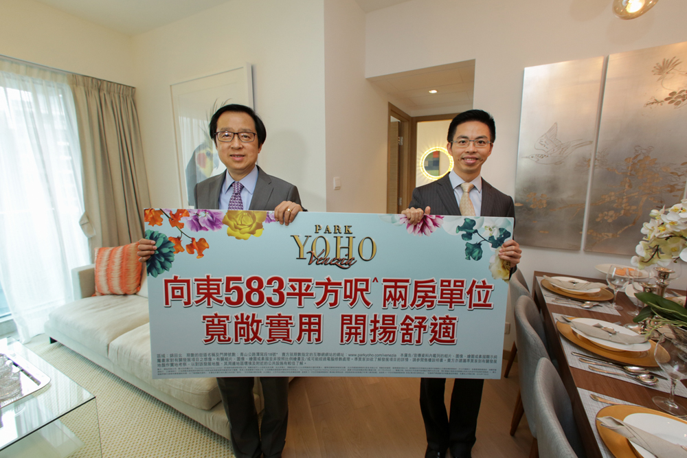圖:雷霆(左)稱同系珀御及筲箕灣項目將是集團下個開賣新盤,旁為新地代理助理總經理陳漢麟