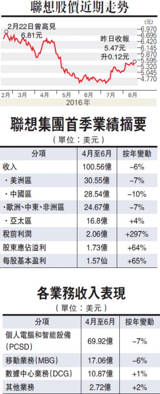 【大公報訊】記者李潔儀報道:聯想集團(00992)旗下包括伺服器、存儲等數據中心業務(DCG),首季(4月至6月)的稅前虧損擴大至6400萬美元(約5億港元)。