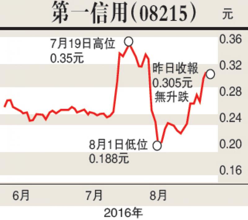 由於現金充足,第一信用在2016年第一季至今協議提供多宗大額的有抵押貸款及無抵押貸款,單筆金額由6位數至8位數不等。翻查公司公告,為期1年之貸款年利率一般約10%至12%,短期(約1個月)之貸款年利率更可達36%,利率回報吸引。