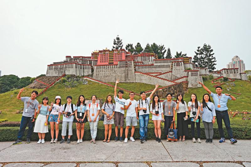 圖:香港傳媒學子在微縮景區布達拉宮前留影 大公報記者林靜文攝