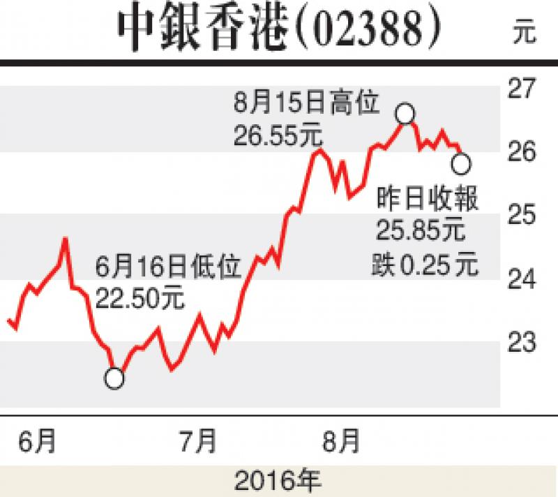 第三博是博中銀香港(02388)派特息。昨日,中銀最高見二十六元一角,最低二十五元八角,收二十五元八角半,較前跌二角半,而宣布中期業績日期為八月三十日(下周二),可以講估得對與錯,很快知道。我認為,即使中銀香港議決暫時不派特息,第二季度仍然有機會,因為出售南商所得的資金,全用來收購母行的東盟分行資產,依然有剩餘也。售「南商」屬百年一遇,如果什麼都不派送,小股東一定十分失望,以中銀善待股東的傳統,大概不會這麼「冷漠無情」吧!總之,我頭牌不太理會整個大市的去留,因為買股不買市,信心是不會失去的。