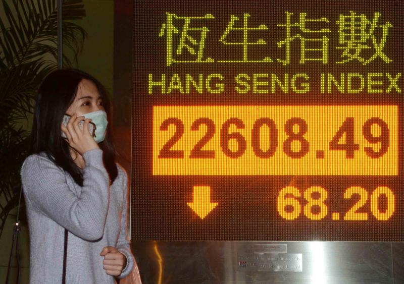 圖:亞洲新興市場走資加劇,港股早段跌近200點,中段受A股造好帶動收復部分失地,恒指收市跌68點,成交558億元 中通社