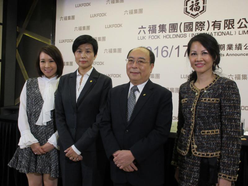 圖:左起:六福執行董事黃蘭詩、首席財務總監陳素娟、主席兼行政總裁黃偉常、副總經理王巧陽 大公報記者李潔儀攝