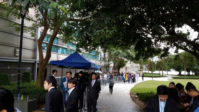 圖:浪澄灣睇樓客冒雨抵冷排隊等上樓