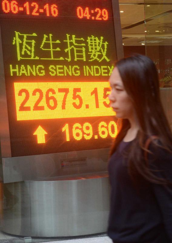 圖:恒指昨日高開188點,收市時升幅縮窄至169點,報22675點 /中通社
