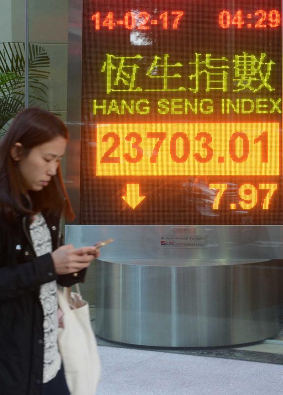 憧憬特朗普推出減稅措施,美股周一高開高走,三大指數齊創新高。不過,亞太區股市並未能造高,在日股領跌下,區內股市普遍走低。港股低開15點後,早段曾拗腰倒升24點,可惜市場買力不強,指數很快便掉頭回軟,收市時跌7.9點,報23703點。國企指數同樣受壓,輕微跌3點,報10254點。主板成交額減少6%,至855億元,但沽空金額逆市升6%,至92億元,反映大戶看淡後市,伺機挾倉。