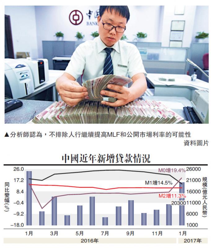 中國人民銀行此前控制奏效,中國上月新增人民幣貸款雖達創近一年來新高的2.03萬億元(人民幣,下同),但遜於市場預期。相較新增貸款,當月的社會融資規模增量不僅大幅高於3萬億元的預期,更同比多增2619億元錄3.74萬億元,創歷史新高。分析稱,其間在央行的窗口指導下,需求從表內轉至表外。專家預計,未來貨幣政策偏緊的基調不改,重點仍偏向去槓桿和防風險,不排除繼續提高MLF(中期便利操作)和公開市場利率的可能性。信貸、社融升勢難以延續。/ 大公報記者倪巍晨上海報道