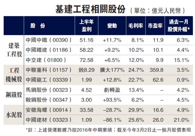 不管是修橋築路,抑或建廠築房,都需要配備建築機械,中國機械企業自然不愁沒有生意。長江證券指出,在建築工程公司增加海外基建項目下,加上新疆推出大型基建投資計劃,工程機械將會是最直接的受益行業。東吳證券相信,在「一帶一路」需求帶動下,工程設備訂單增長將具備持續性。