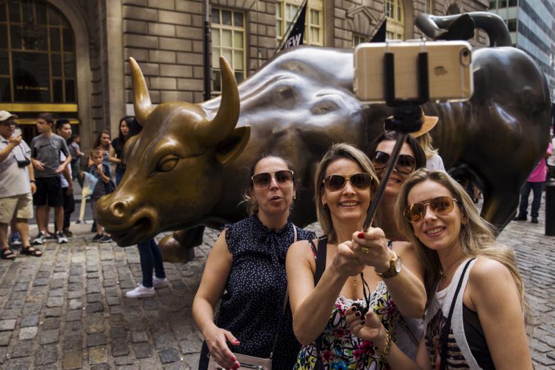 圖:隨着全球經濟回暖,加上美國總統特朗普新政刺激,投資者扭轉看淡商品的態度,資金顯著流入商品市場;圖為紐約華爾街銅牛像/資料圖片