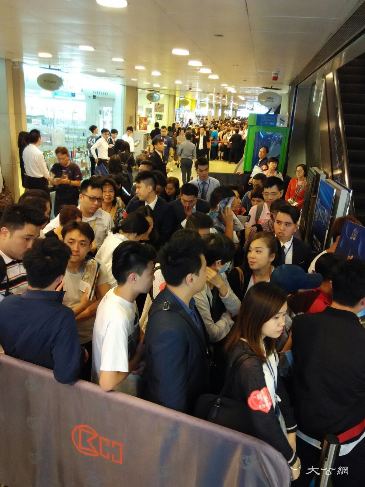 記者現場直擊,設於尖沙咀港景峯商場三樓的示範單位,人龍由該層排落地下,再延至後門,幾乎排出室外,情況墟冚,見證低價招徠威力。
