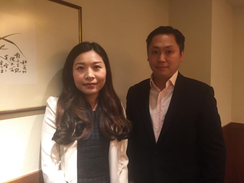 圖:亨泰消費品集團執行董事陳卓宇(右)與顧問庾婉華出席傳媒午宴 大公報攝