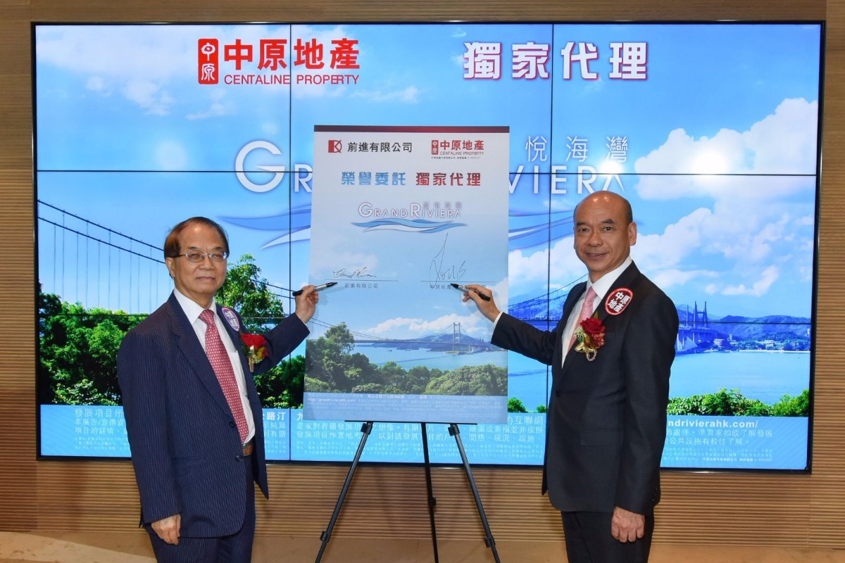關秩安與陳永傑就星悅海灣的代理銷售簽約作實(梁穎賢攝)